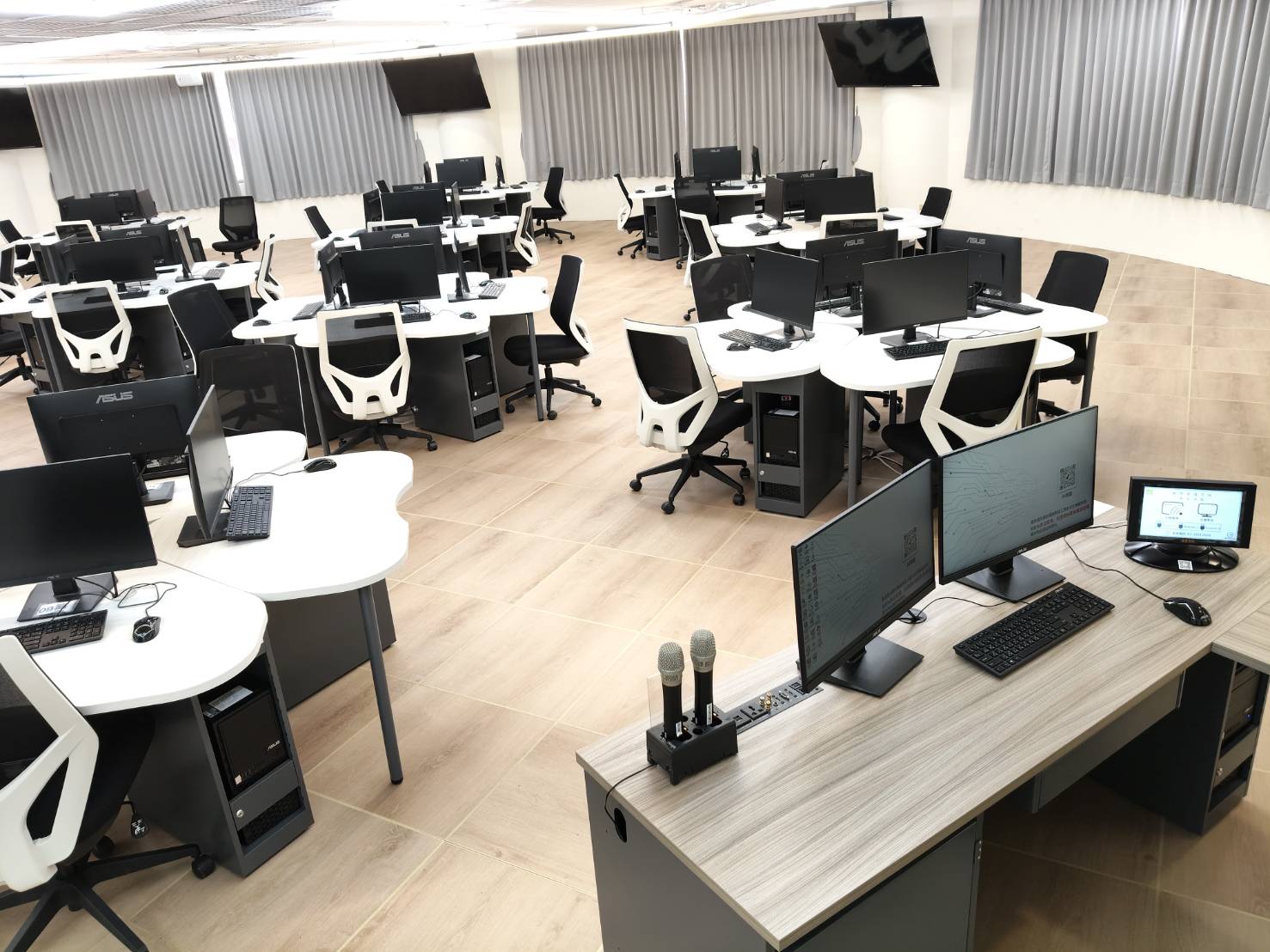 包含:人工智慧電腦教室配備高效能運算設備,支援人工智慧與機器學習相關課程與實作,提供學生進行AI模型訓練與資料分析應用,培養智慧科技應用與開發能力。